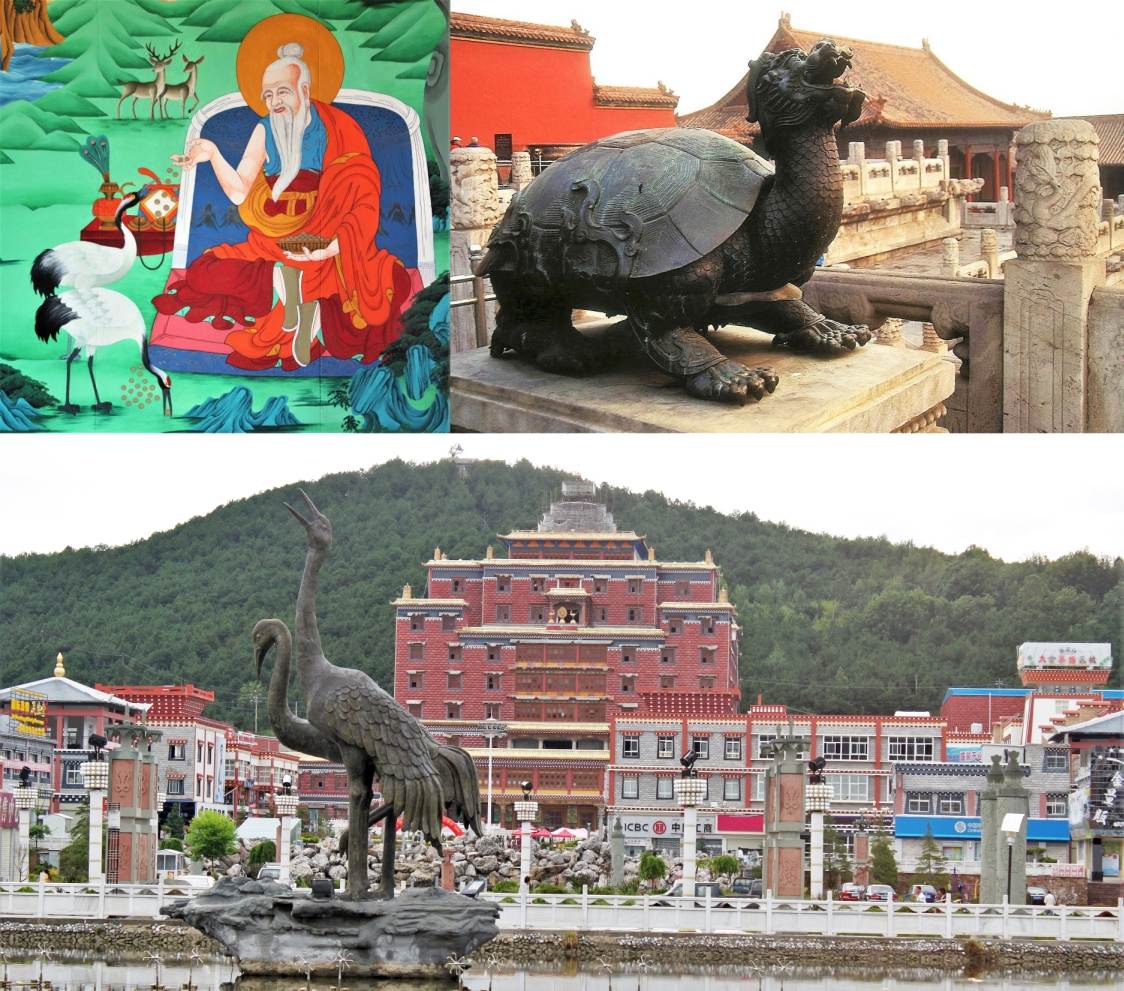 Le but de la médecine chinoise est d’allonger la vie, d’atteindre l’immortalité. Deux animaux, la tortue et la grue sont d’ailleurs liés à cette longévité dans la symbolique taoïste qui imprègne la civilisation asiatique (Vietnam, Japon ou Chine..). La tortue (龜) est l’un des quatre animaux célestes, surnaturels ou bénéfiques de la Chine ancienne, avec le dragon, le qilin (animal composite fabuleux possédant pelage et/ou écailles et une paire de cornes ou une corne unique) et le phénix. Du fait de sa durée de vie exceptionnelle, elle est l’une des allégories de la longévité et symbolise la sagesse et l’immortalité. La voici représentée au sein de la Cité interdite (紫禁城) de Beijing ou le long de la Voie des Esprits à l’entrée de la nécropole impériale des Ming (figure 1).