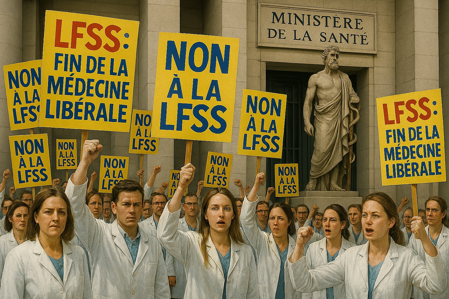 Comme vous le savez, la loi de Financement de la Sécurité Sociale (LFSS) a provoqué une grève massive largement suivie à l’échelle nationale du 5 au 15 janvier 2026. Les sources concordent sur une mobilisation exceptionnellement forte, rarement observée dans la profession. Plus de 14 500 médecins libéraux s’étaient déjà déclarés grévistes via la plateforme dédiée en Île‑de‑France [[1]]. Dans certaines cliniques, la participation atteignait 90 % des médecins libéraux, un niveau jugé inédit par les responsables hospitaliers privés [[2]]. En Loire‑Atlantique, le mouvement était décrit comme particulièrement suivi, notamment chez les spécialistes [[3]]. Dans plusieurs régions (Drôme, Ardèche, Grand Ouest, Bourgogne–Franche‑Comté, Sud et Sud-Est, Nord et Est), les cabinets fermés, les reports massifs d’interventions et les délais explosifs témoignent d’une mobilisation très visible [[4]].