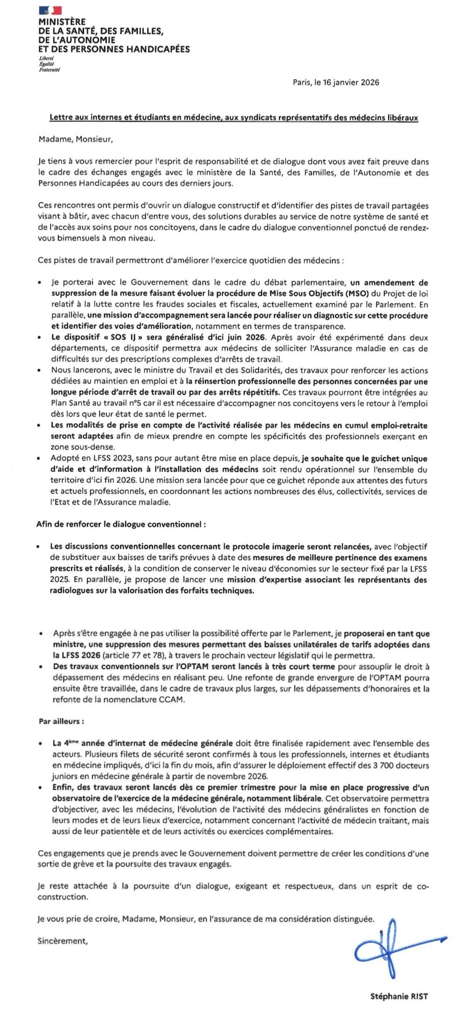Ainsi la ministre Stephanie RIST a écrit un courrier avec des annonces qui engagent le gouvernement, ce courrier a été lu et validé par le premier ministre Sébastien Lecornu.