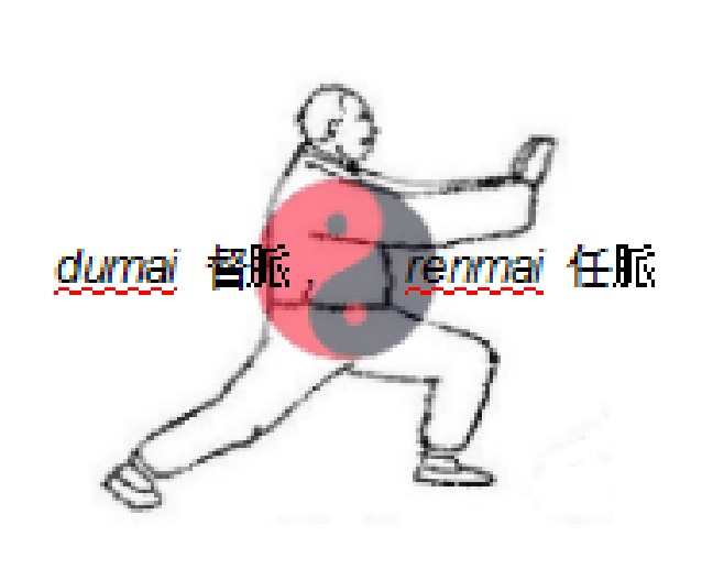 Ce chemin a commencé un jour de pratique solitaire au cours duquel sans rien chercher, j'ai senti les souffles circuler sur chongmai. Puis j'ai eu l'occasion d'assister à une conférence de Maître Chang Pintsang 張品璨老師 (Taipei novembre 2009), qui, sur sa présentation, avait dessiné (sans les nommer) des trajets de méridiens extraordinaires (photo 1). L'histoire continue avec Maître Su Qingpiao, qui lors d'un entraînement (Beijing juillet 2010) a cité, pour nous orienter dans la façon de faire un mouvement : shoutaiyin, yinqiaomai et jiaji. Nous reviendrons sur ces termes dans ce texte. Les discussions que j’ai eues avec ces deux personnes m’ont encouragée à poursuivre mes recherches. Le chemin est encore long !